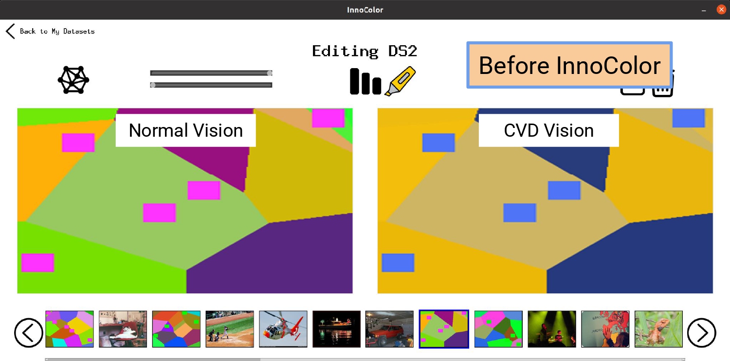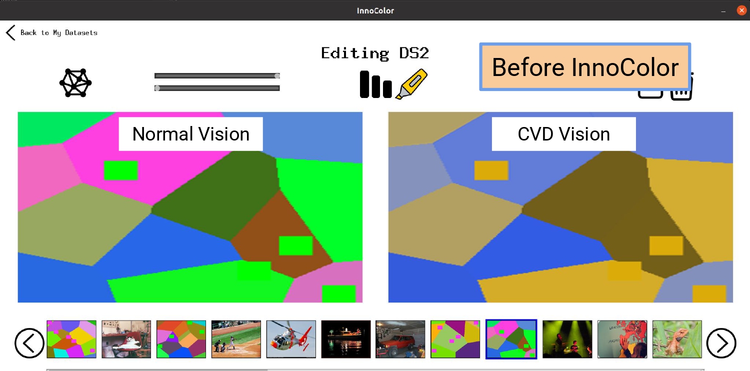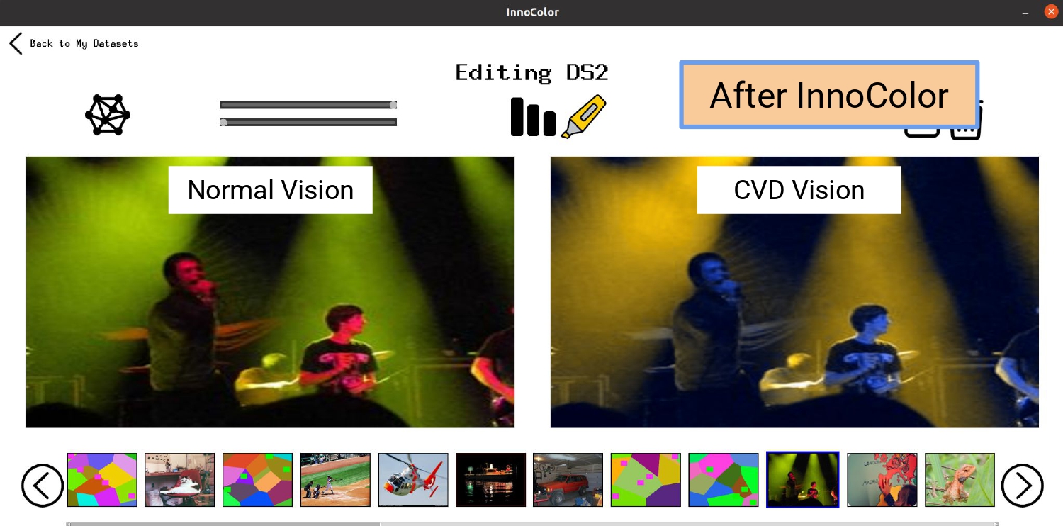 InnoColor utilizes a deep-learning guided image transformation to modify visual content, like images, video, and GUI, in both digital software and physical interfaces.